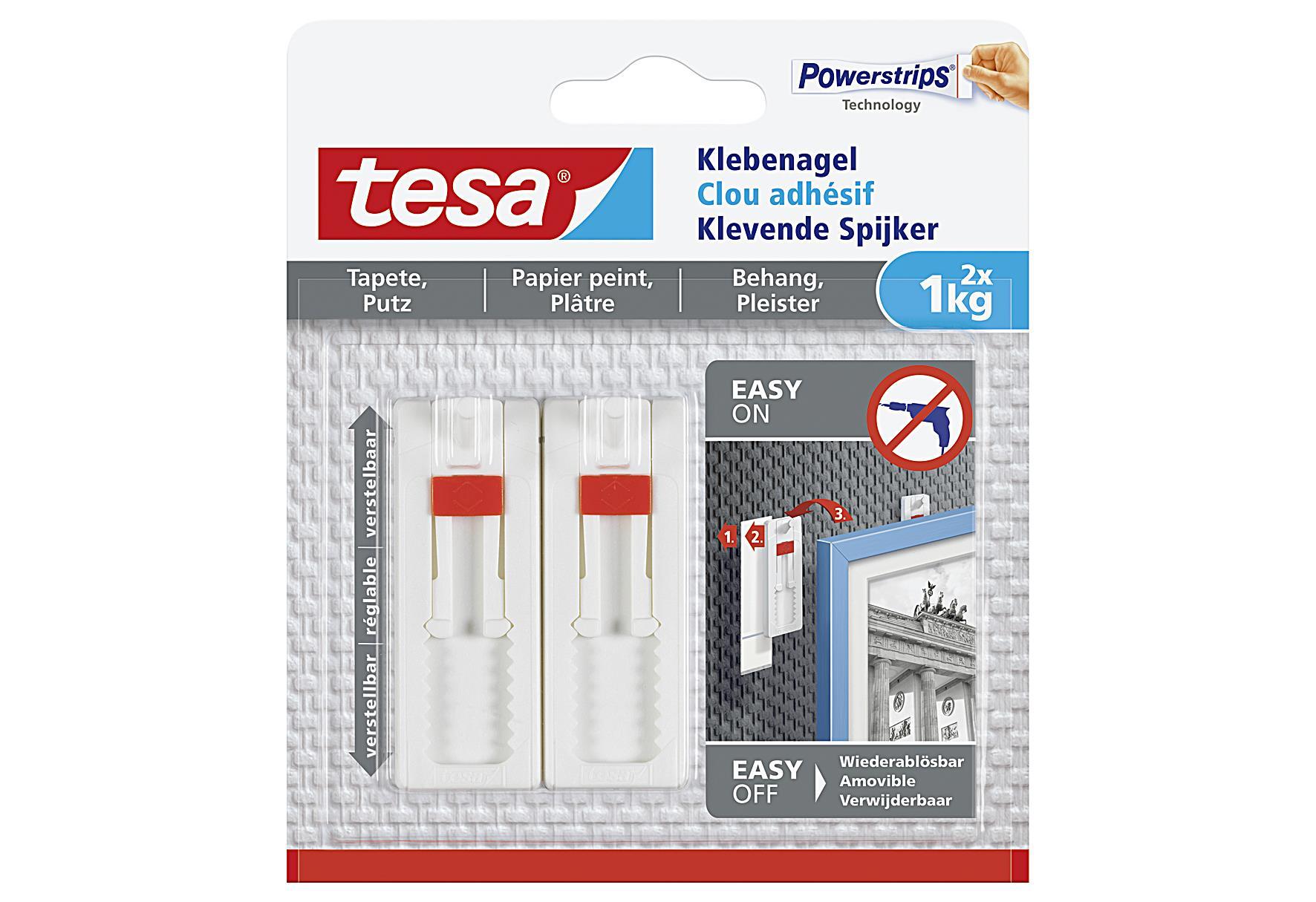 TESA Klebenagel Powerstrips Tapete und Putz 1kg verstellbar 2 StückrnLieferumfang: 8 VPE